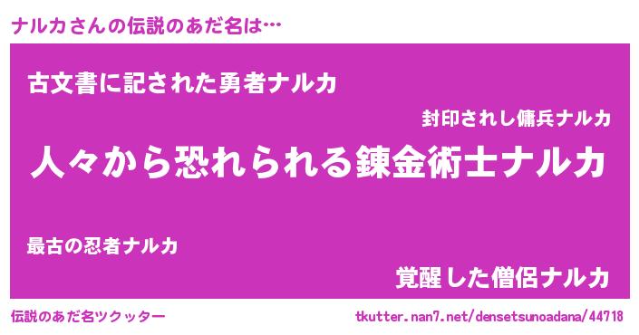 | 女子向けラノベタイトル風あだ名 | 『ナルカなんてお断りですっ。』 |