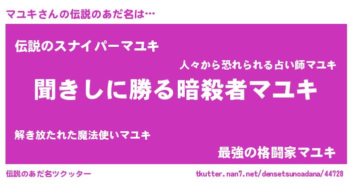 | ファンタジー風あだ名 | 『マユディッシュ』『マユフェル』 |