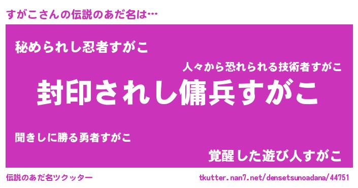| 意味不明あだ名 | 『ペロリンすがこ』『すがこフォーエバー』 |