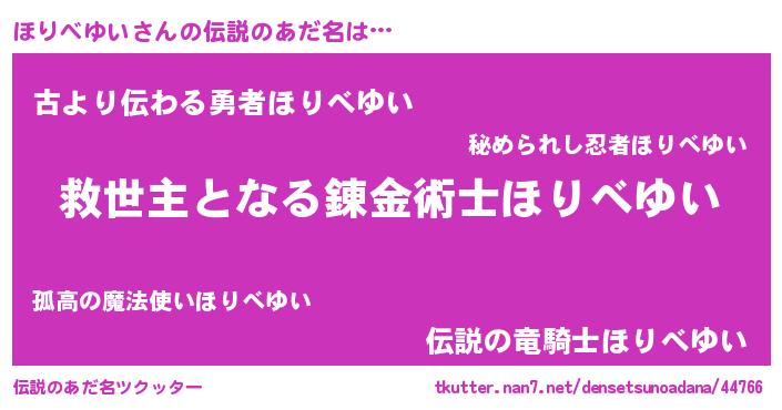 | ヒーロー風カッコイイあだ名 | 『慈愛の使者ほりべゆい』『仮面ホリダー』 |