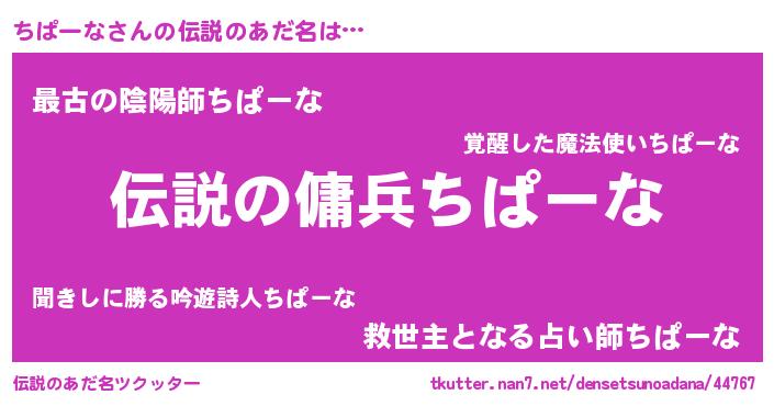 | ヒーロー風カッコイイあだ名 | 『スーパーチパーナ』『究極戦士チパーナ』 |