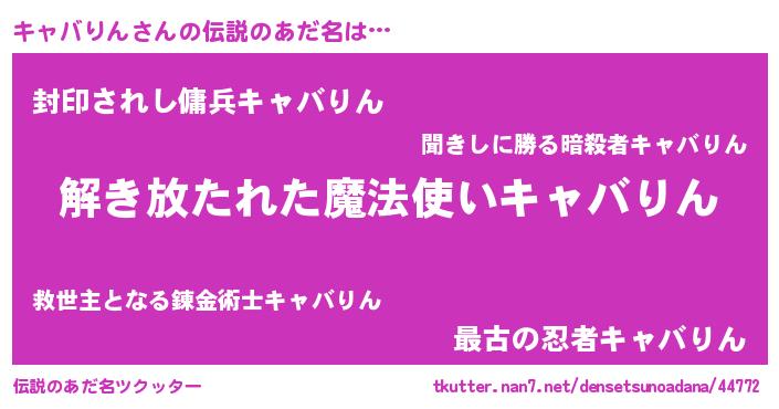 | ヒーロー風カッコイイあだ名 | 『魔戒騎士キャ』『仮面キャダー』 |