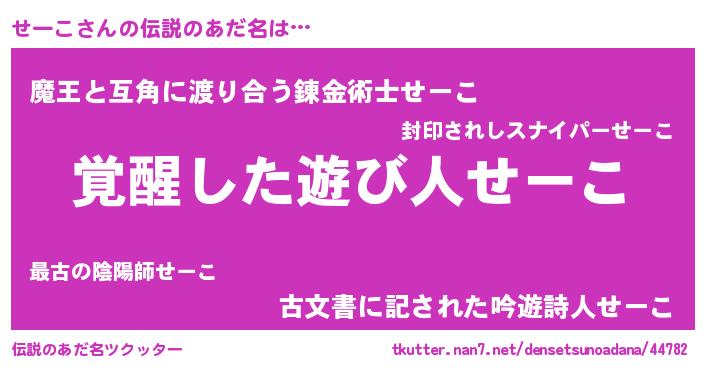 | 意味不明あだ名 | 『とにかく怪しいせーこ』 |