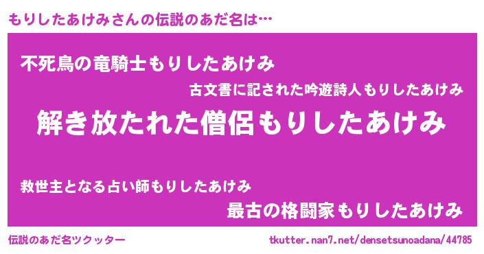 | 男性向けラノベタイトル風あだ名 | 『この素晴らしい世界にもりしたあけみを!』 |