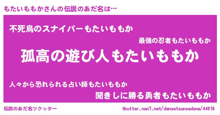 | 男性向けラノベタイトル風あだ名 | 『緋弾のモタイモモカ』 |