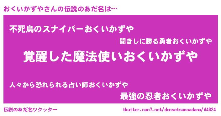 | 男性向けラノベタイトル風あだ名 | 『おくいかずやの嫁は女の子じゃないと思った?』 |