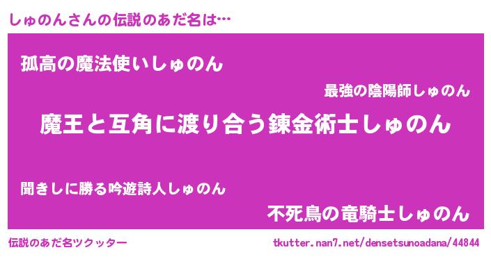 | ヒーロー風カッコイイあだ名 | 『慈愛の使者しゅのん』『黄金騎士シュ』 |