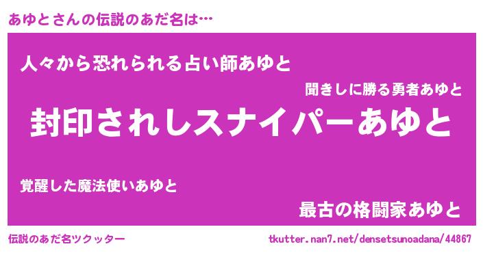| 胡散臭い通販商品みたいなあだ名 | 『億万長者になれる霊験あらたかなお札…その名も「あゆと」』 |