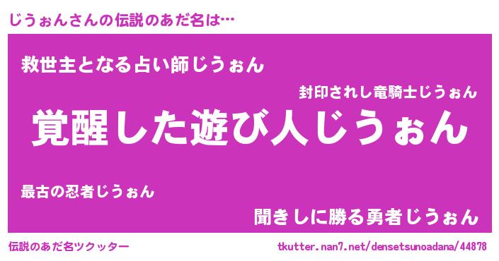 | 男性向けラノベタイトル風あだ名 | 『じうぉんに滅ぼされるだけの簡単なお仕事です』 |