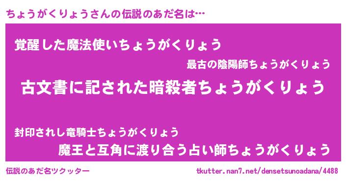 | ヒーロー風カッコイイあだ名 | 『ネオチョウガクリョウ』『仮面チョダー』 |