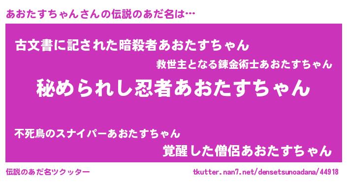 | ヒーロー風カッコイイあだ名 | 『ウルトラあおたすちゃんマン』 |