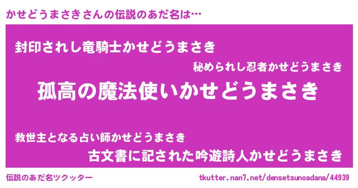 | ヒーロー風カッコイイあだ名 | 『暗黒騎士カセ』『ネオカセドウマサキ』 |