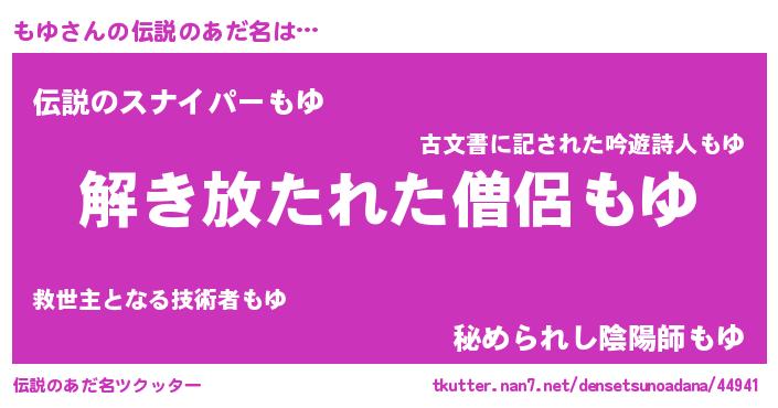 | ファンタジー風あだ名 | 『ファントムモユス』『ゼモユトゥ』 |