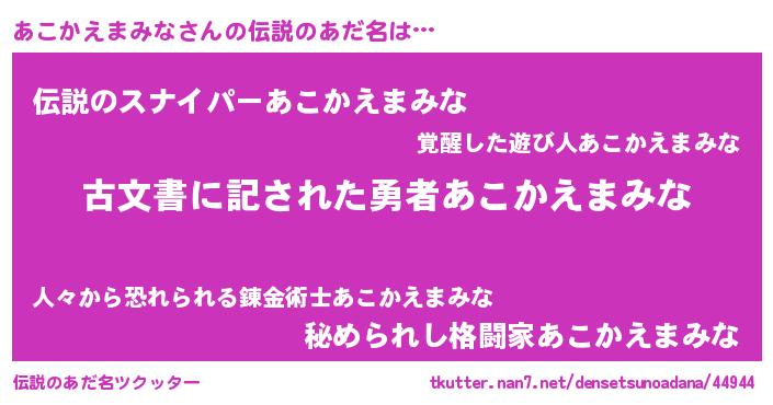 | 意味不明あだ名 | 『永久保存あこかえまみな』 |