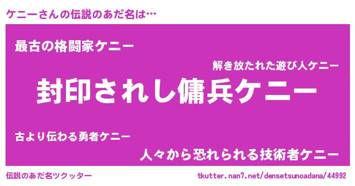 | ヒーロー風カッコイイあだ名 | 『スーパーケニー』『仮面ケニダー』 |