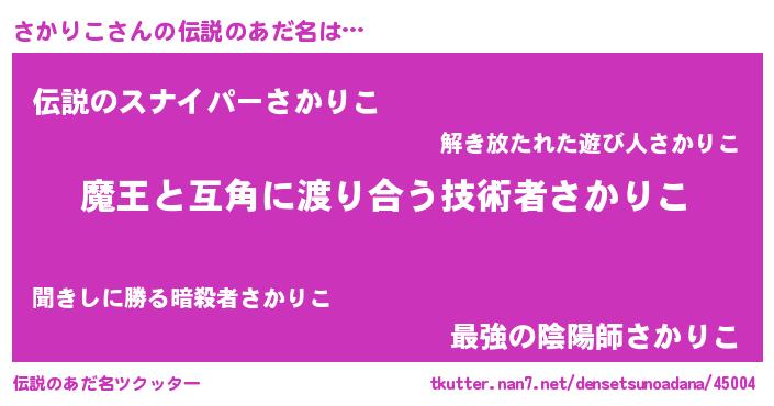 | ヒーロー風カッコイイあだ名 | 『仮面サカダー』『天空の使者さかりこ』 |