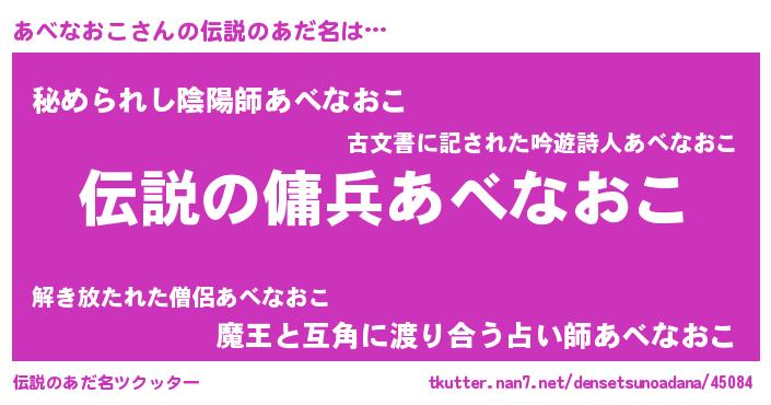 | 恥ずかしいあだ名 | 『プリティーあべなおこ』『あべっちょ』 |