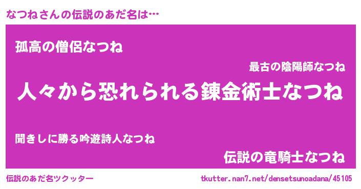 | ポケモン風あだ名 | 『ナーツイ』『ナツゴンZ』『ヒナツネ』 |