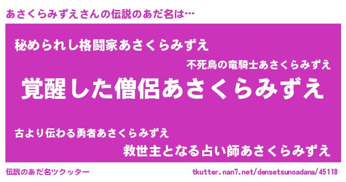 | 意味不明あだ名 | 『自称あさくらみずえ』 |