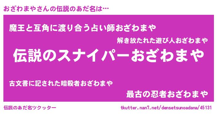 | 胡散臭い通販商品みたいなあだ名 | 『必ず成功する霊験あらたかなお札…その名も「おざわまや」』 |