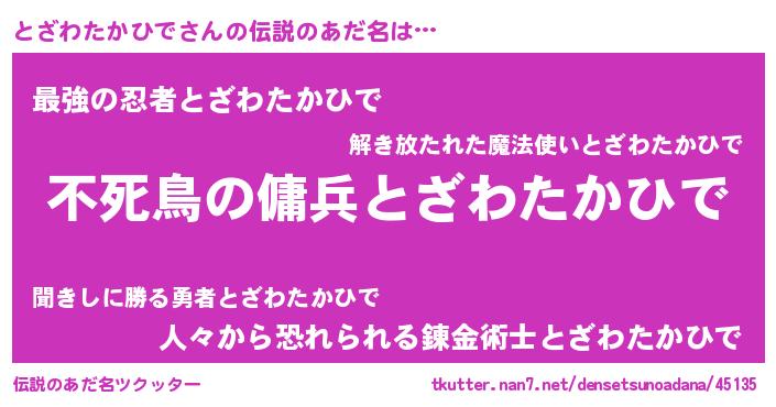 | 男性向けラノベタイトル風あだ名 | 『とざわたかひでの憂鬱』 |