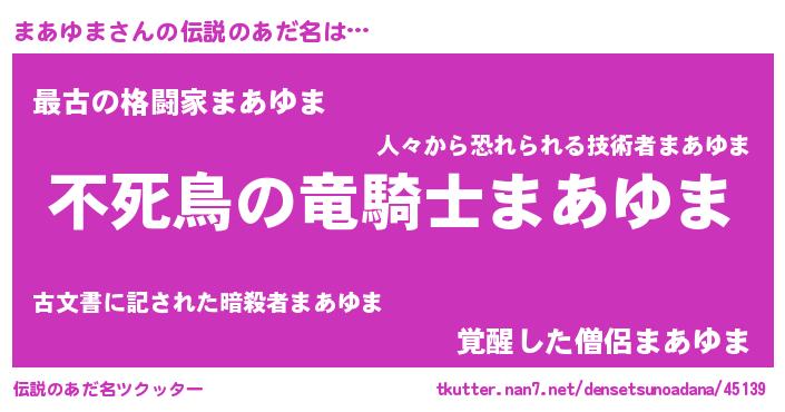 | 女子向けラノベタイトル風あだ名 | 『まあゆま姫と円卓の騎士』 |