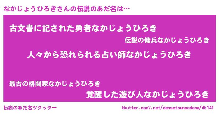 | 意味不明あだ名 | 『住所不定無職なかじょうひろき(65歳)』 |