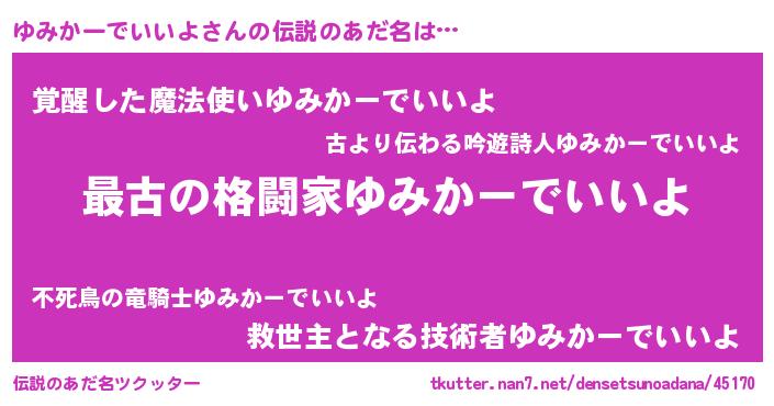 | 意味不明あだ名 | 『ゆみかーでいいよフォーエバー』 |