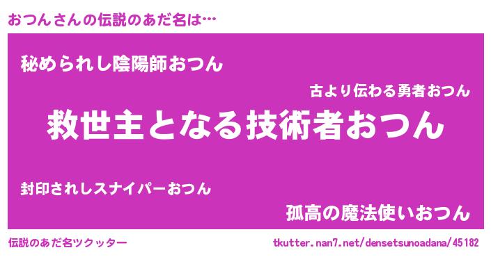 | ヒーロー風カッコイイあだ名 | 『慈愛の使者おつん』『仮面オツダー』 |