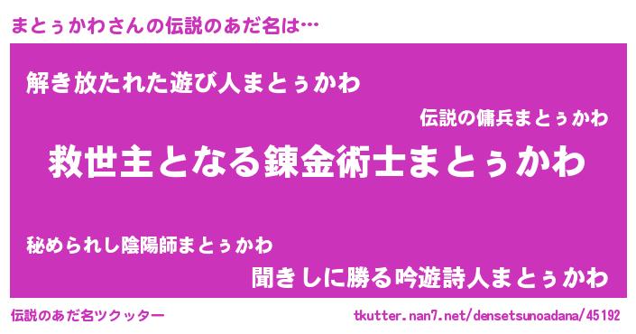 | 男性向けラノベタイトル風あだ名 | 『ノーゲーム・ノーマトゥカワ』 |