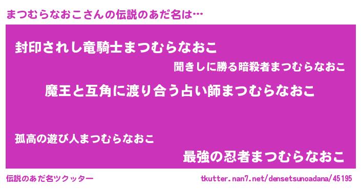 | ヒーロー風カッコイイあだ名 | 『愛の使者まつむらなおこ』 |