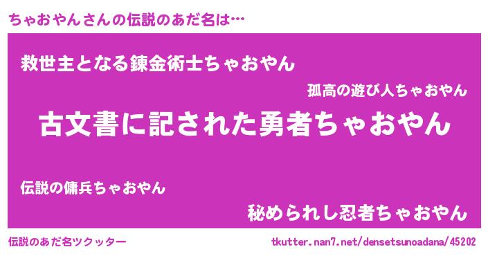 | 意味不明あだ名 | 『永久保存ちゃおやん』 |