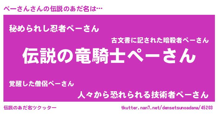 | 胡散臭い通販商品みたいなあだ名 | 『ガンによく効く高麗人参…その名も「ぺーさん」』 |