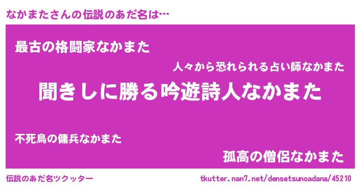 | 意味不明あだ名 | 『住所不定無職なかまた(6歳)』 |