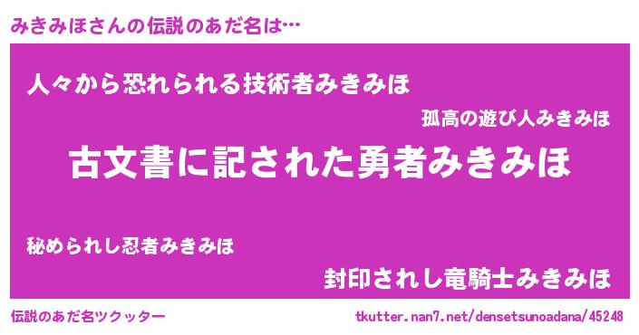 | 意味不明あだ名 | 『永久保存みきみほ』『自称みきみほ』 |