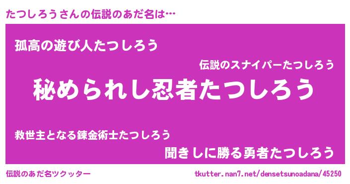 | 意味不明あだ名 | 『たつしろうフォーエバー』 |