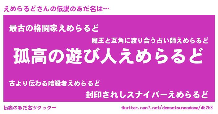 | ヒーロー風カッコイイあだ名 | 『暗黒騎士エメ』『仮面エメダー』 |
