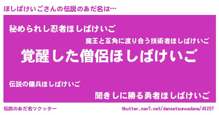 | 意味不明あだ名 | 『とにかく怪しいほしばけいご』 |