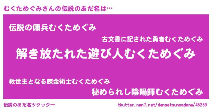 | 意味不明あだ名 | 『とにかく怪しいむくためぐみ』 |