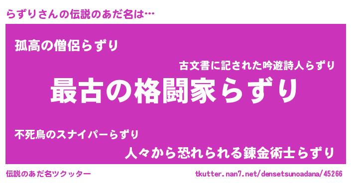 | ヘコむあだ名 | 『豆乳』『らずを』『らずり(遠い目)』 |