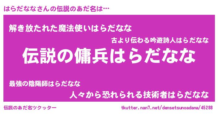 | 肩書あだ名 | 『はらだなな閣下』『はらだなな少佐』 |