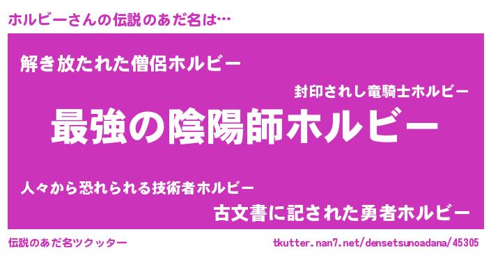 | ファンタジー風あだ名 | 『エターナルホルビーー』『ゼホルトゥ』 |