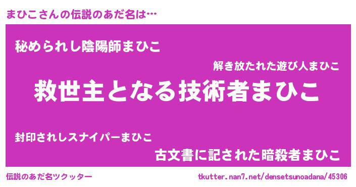 | 男性向けラノベタイトル風あだ名 | 『ノーゲーム・ノーマヒコ』 |