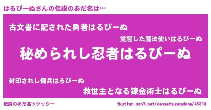 | 料理風あだ名 | 『はるぴーぬごはん』 |