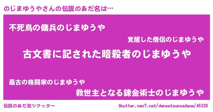 | 意味不明あだ名 | 『自称のじまゆうや』 |