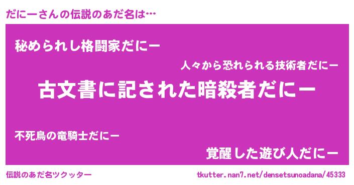 | ファンタジー風あだ名 | 『ダニディッシュ』『エターナルダニーー』 |