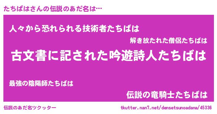 | ヒーロー風カッコイイあだ名 | 『ネオタチバハ』『友情の使者たちばは』 |