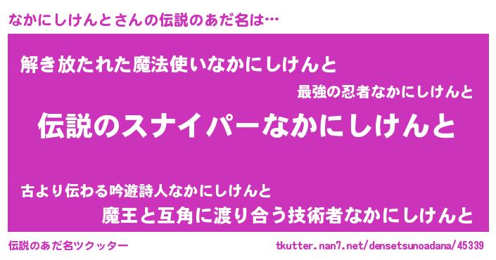 | 胡散臭い通販商品みたいなあだ名 | 『必ず成功する霊験あらたかなお札…その名も「なかにしけんと」』 |