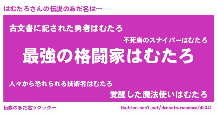 | 意味不明あだ名 | 『はむたろフォーエバー』『自称はむたろ』 |