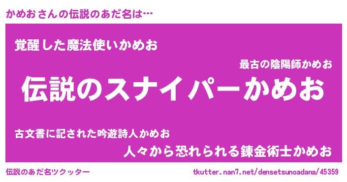 | 女子向けラノベタイトル風あだ名 | 『シンデレラかめお家の靴箱館』 |